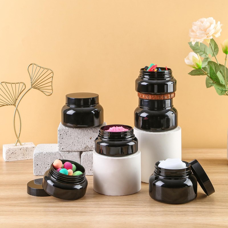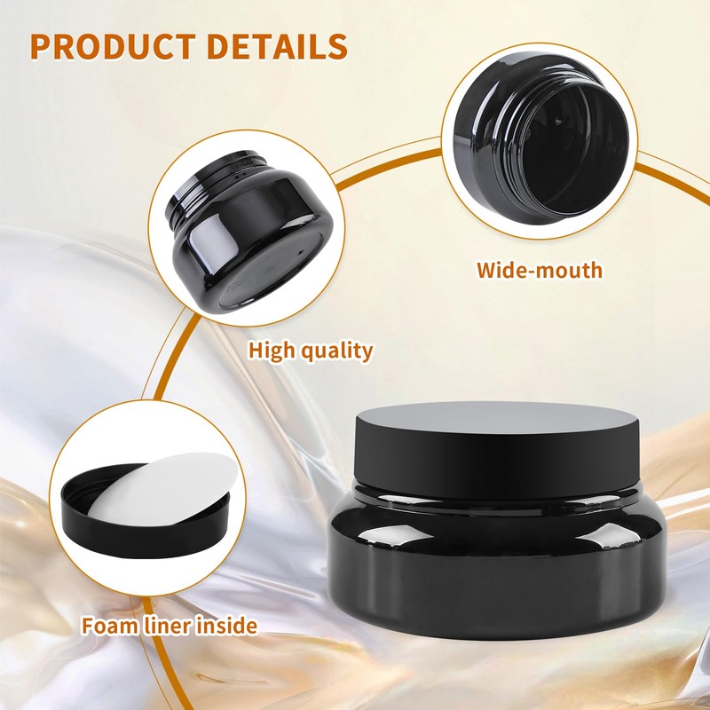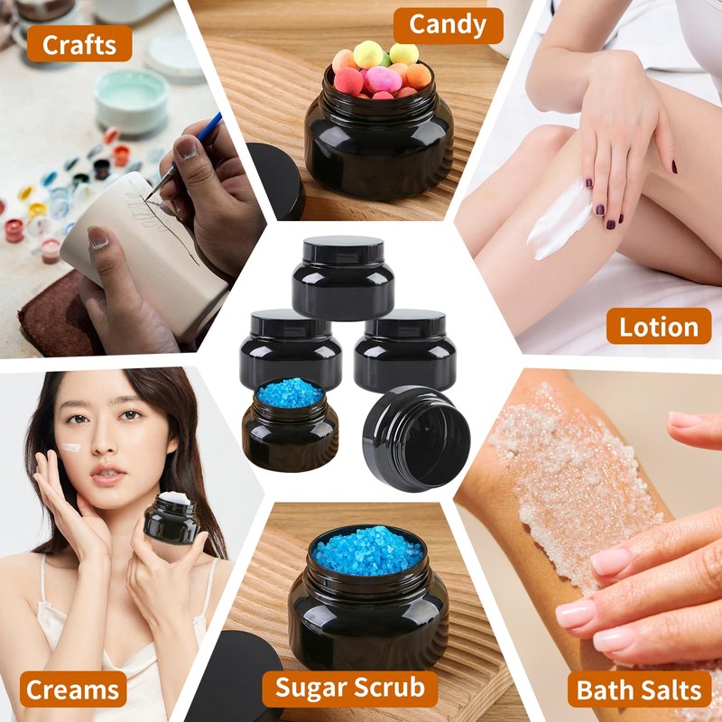- [Widely Used]:This cosmetic bottle with lid is very versatile, excellent storage jars for creams, emulsions, body scrubs, body butter, and other personal care, and is also suitable for storing items such as dry food, nuts, spices, flour, cute candy, or other handcrafted items.It is not recommended to install higher temperature objects.
