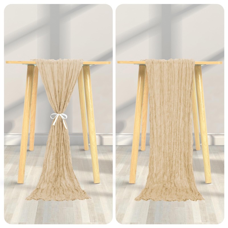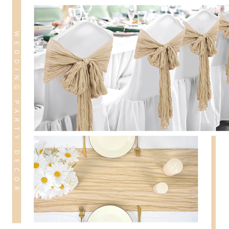- 🏵Package Includes: You will receive 24pcs beige cheesecloth table runner,enough quantity for wedding receptions and various parties, even can be used for chair sashes or decorative napkins, backdrop pendants and any decor ideas. The beige table runner has a rustic and elegant appearance, and the natural wrinkled texture perfectly decorate your event, provide an elegant dining environment, and make your event impress your guests.