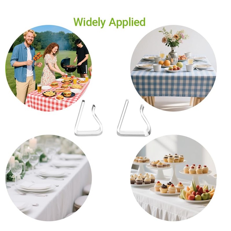 - 🧼 WIDE APPLICATION - Universal Compatibility! These tablecloth clip sets are great for indoor and outdoor dining tables, camping, backyard barbecues, family gatherings, outdoor potlucks, etc. They are also suitable for commercial use in indoor and outdoor venues such as beachside restaurants, buffets, weddings, celebrations and family dining tables, and they are the best solution for windy days.