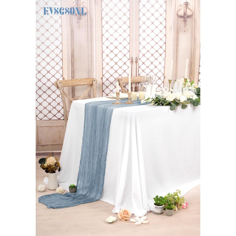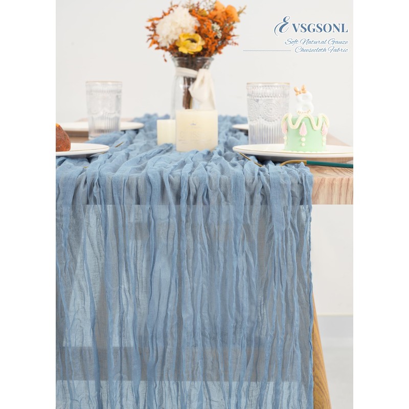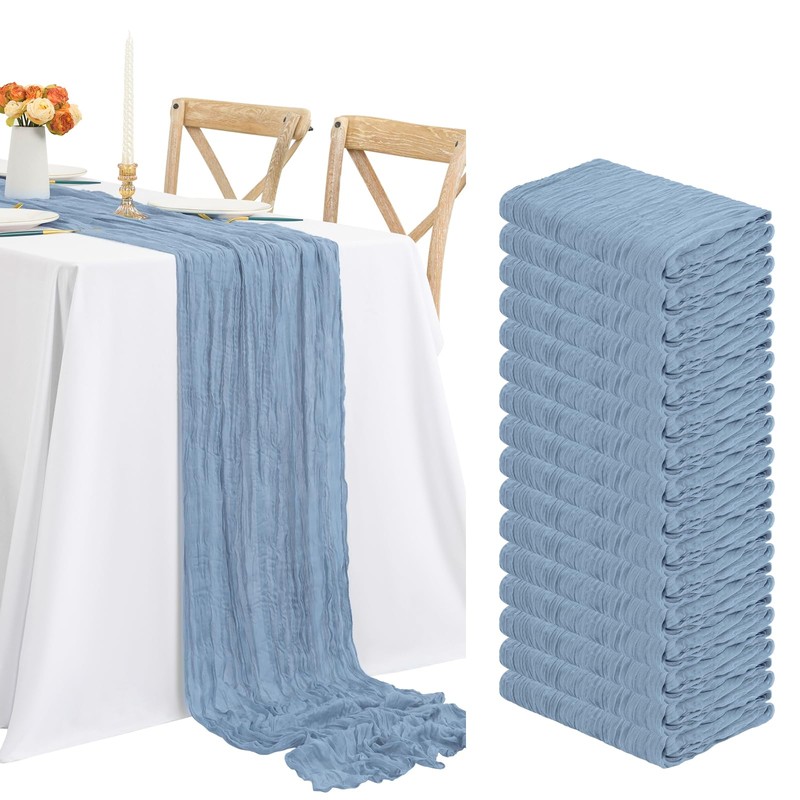 - 🍁Sufficient Quantity:24 Pieces dusty blue gauze cheesecloth table runner, made of premium polyester material,delicate and soft,durable,light and breathable.Sufficient quantity can meet your needs for your wedding banquets party decor,daily use or replace.The natural wrinkles texture full of design sense and do not need to be ironed. Add a high end looking to your table and perfect for boho rustic themed party.