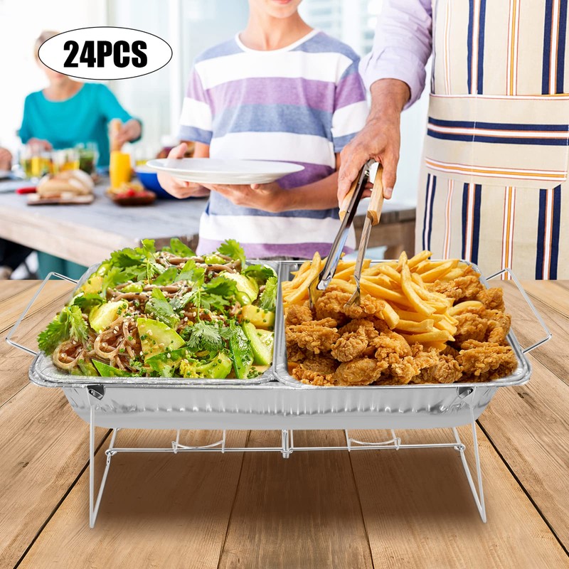 24 Pack Foldable Chafing Stand, Chafing Wire Rack Buffet Stand, Chrome Frame for Dish Serving Trays, Food Warmer Catering Supplies