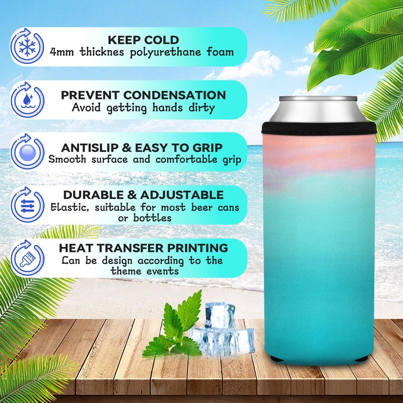 - Support Heat Transfer Vinyl: The blank multipack beer sleeves for skinny can is perfect for DIY design and print their favorite patterns. It can be self-design print according to various party themes, enterprise and other event themes. This will become the most eye-catching decoration at the party, making every friend who receives this cute and thoughtful can cooler highly praised.