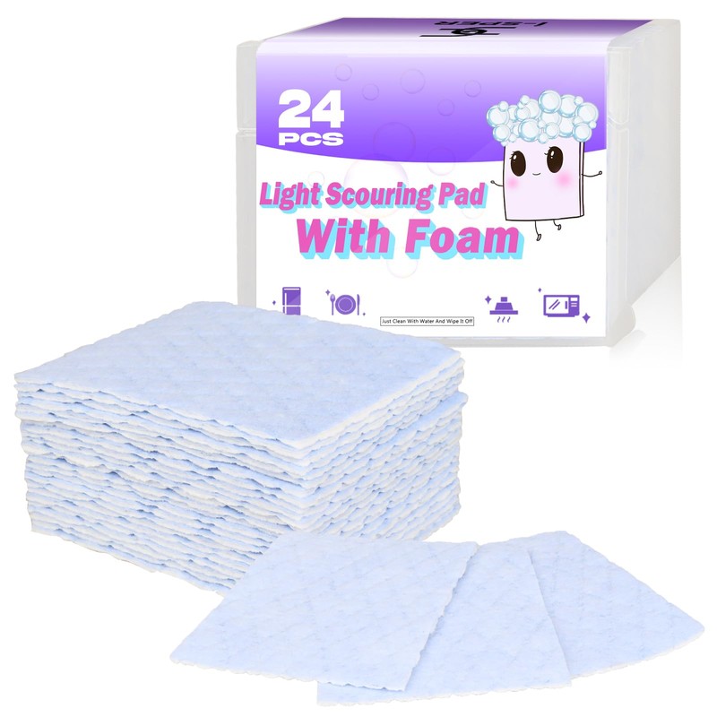 24 Pack Light Scouring Pad with Foam, Triple Cleaning Scrub Pad Singles Heavy Duty Household Non-Scratch Abrasive Hand Pad Multi Surface Magic Sponge Eraser Sheets for Home Surfaces Indoor Cleaning