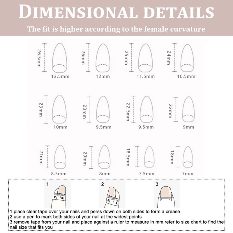 - Easy DIY app: Say goodbye to troublesome salon visits, our medium almond shaped fake nails are very easy to use at home. There is no need for complicated process, as long as 15 minutes, you can achieve the same effect as a professional salon