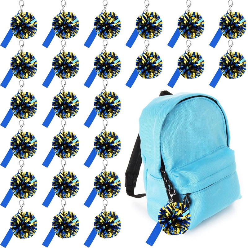 • High-Quality & Durable Materials: Each pom pom keychain features vibrant blue and gold pom poms, crafted from soft yet durable materials with strong gloss, elasticity, and long-lasting durability. The sturdy metal buckle ensures easy attachment and reliable use, perfect for everyday carry.
