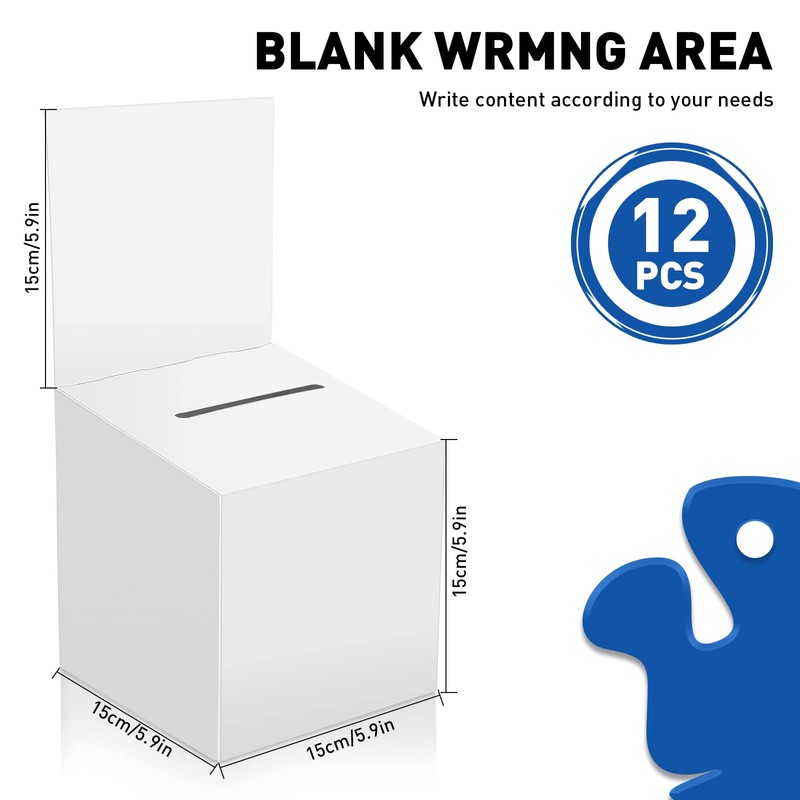 - 24 BLANK LABELS FOR CUSTOMIZATION CARDBOARD BOX-our large raffle box set can be customized using the included printable balot suggestion vote boxes labels (6 x 6 x 6 inches slot) or your could decide the types of ballot box with header