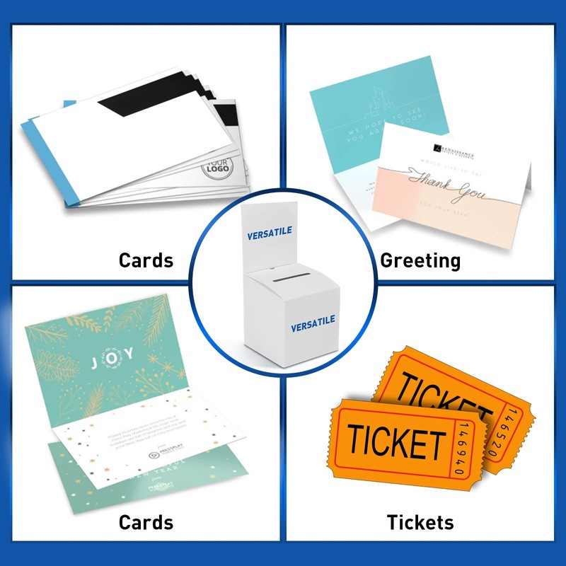 - WIDELY USES:These boxes can be used as voting box, fundraiser box, ballot box cardboard, suggestion box paper, ticket drawing box, cardboard donation box, raffle ticket boxes,cardboard suggestion box, contest entry box,wedding reception tip box card box , diaper raffle box for baby shower, prize baskets for raffle prizes wedding reception and more
