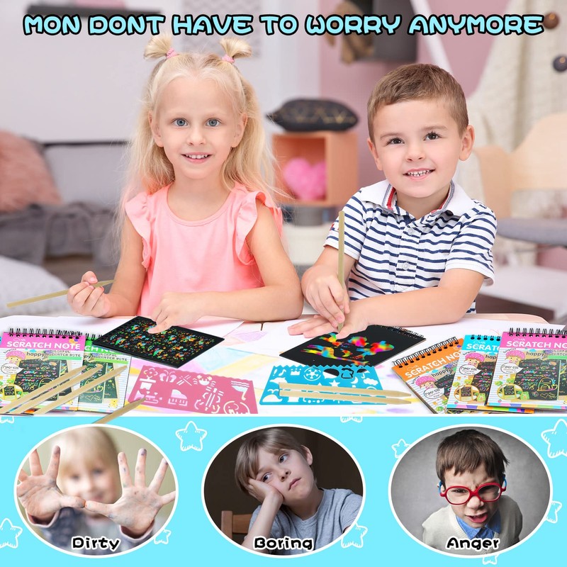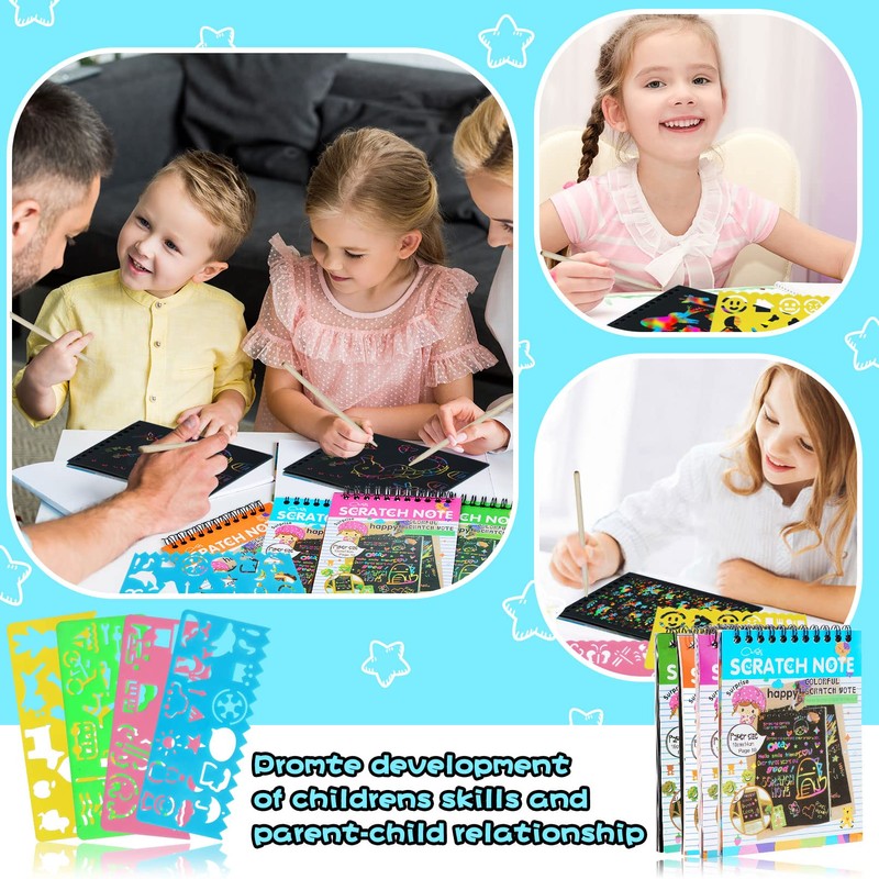 - 🧩Unleash Your Child's Creativity: These rainbow scratch paper notes can be used for doodling, note taking, card making, painting, sketching, and creating stunning illustrations and designs. Great for kids to create, unleash their creativity and express their artistic ideas, as well as improve kids' hands-on skills.