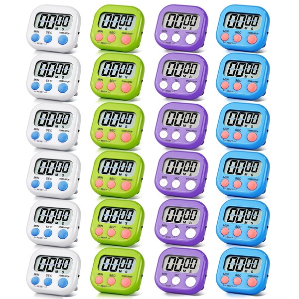 24 Pack Timers Magnetic Kitchen Timer Cooking Timers for Kitchen Digital Timer with Big Display Loud Ring Electronic Timer for Cooking, Classroom, Break Time(24, White,Green,Blue,Purple)