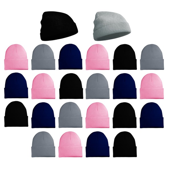 24 Pack Winter Beanies, Bulk Unisex Thermal Toboggan Hats Donation Skull Caps (US, Alpha, One Size, Assorted Solids #2)