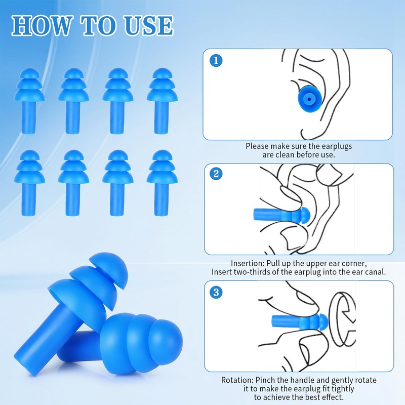 - Easy To Use: Soft reusable ear plug are easier to insert and remove than the typical foam ones, and they stay in place more consistently, these soft silicone earplugs can be washed repeatedly and applied many times.