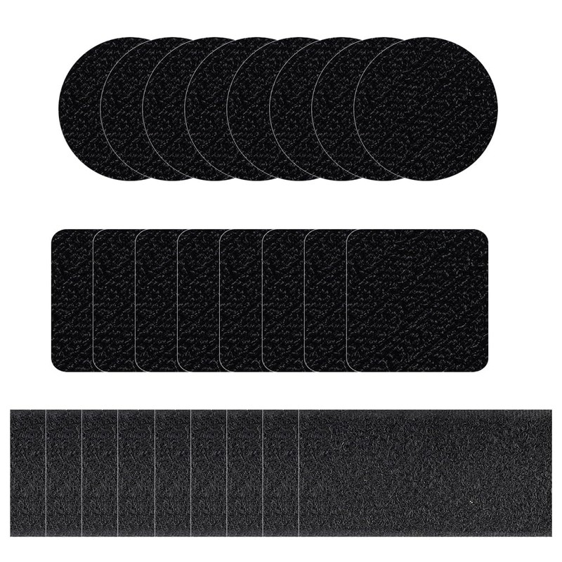 Includes 24 pairs of black rug grips—8 square clips, 8 circular clips, and 8 rectangular clips—providing ample grips for all your carpet needs
