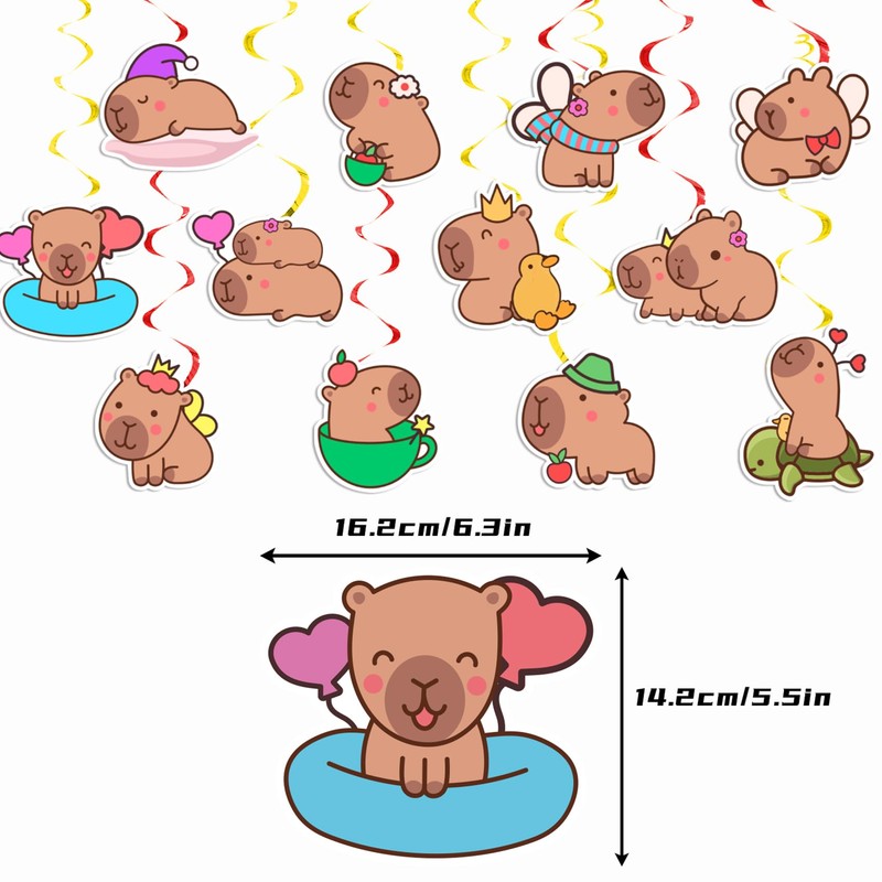 - Capybara Party Decorations: Package includes 24 pcs capybara hanging swirls, 12 patterns, 2 per pattern. A sufficient quantity will help you create a perfect party scene.
