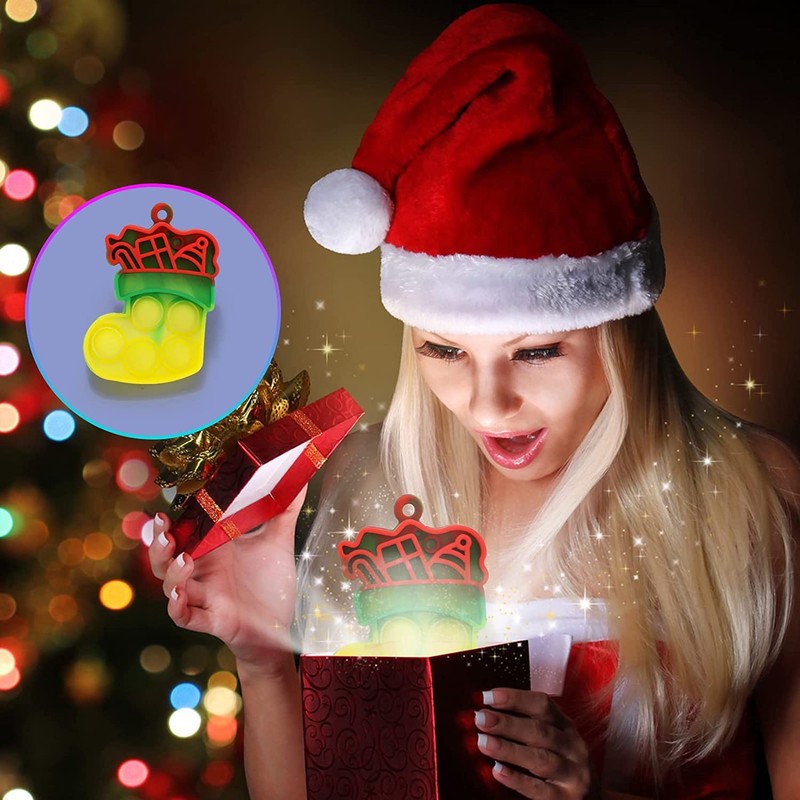 24 Pcs Christmas Mini Push Pop Bubble Fidget Toy, Keychain Bubble Pop Toy, Fidget Keychain Relieve Anxiety Stress Pop Fidget Toy