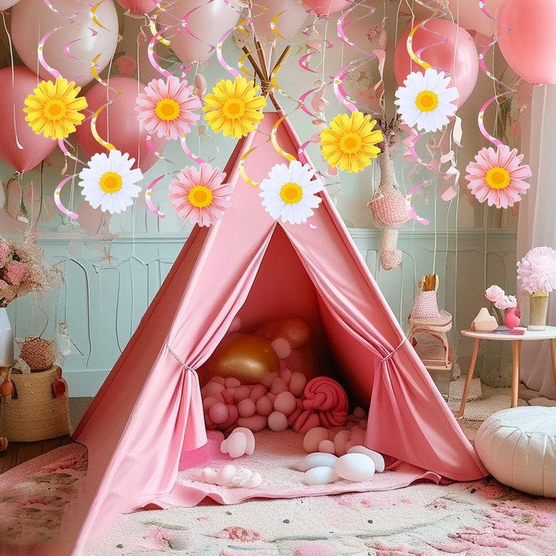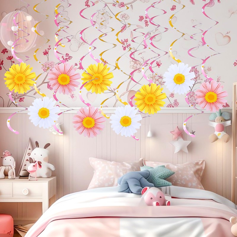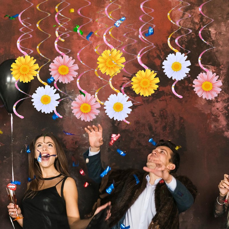 - Whimsical Daisy Design: Elevate your daisy party decorations with our charming daisy flower cutouts and colorful foil swirls. Perfect for creating a cheerful and joyful atmosphere at any event.