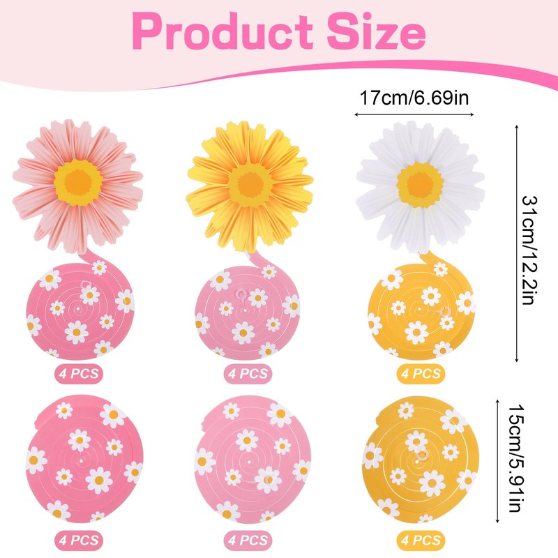 24 PCS Daisy Hanging Swirls Decorations, Daisy Flower Hanging Swirls, Daisys Party Decorations, Boho Foil Swirl Ceiling Hangings Decor for Office Mother Day Spring Party Birthday
