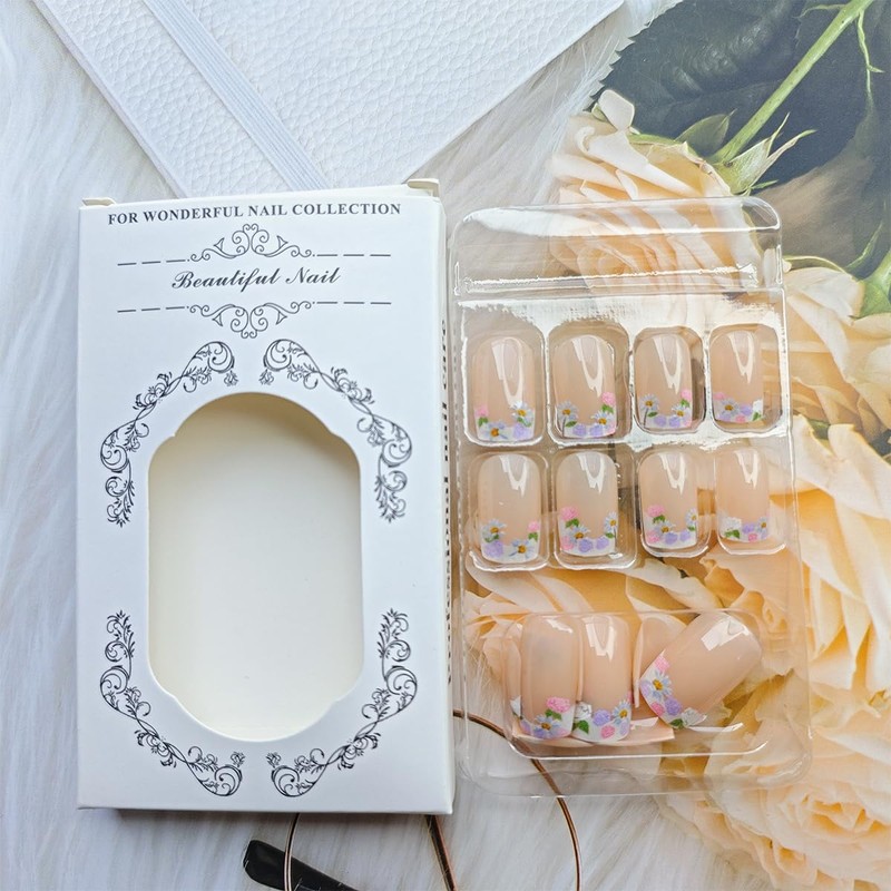 - Perfect Gift: Exquisite french tip flower press on finger nails are the perfect gift for women and girls. You can gift it to your mother, girlfriend or sister and the girls you like, suitable for festival, parties, proms, dates and weddings, etc