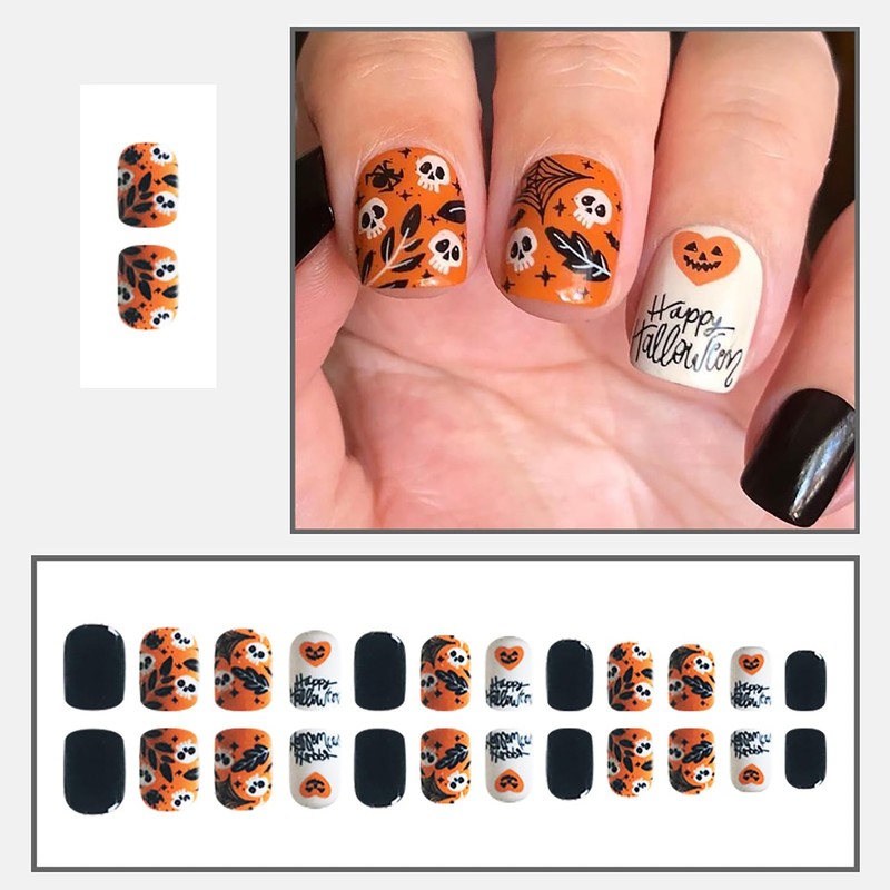 - 【Halloween Nail Art Include】:Our packaging box is exquisite and beautiful.It contains 24pcs Halloween fake nails and a set of DIY nail art tools.Meet your Halloween wearing needs.