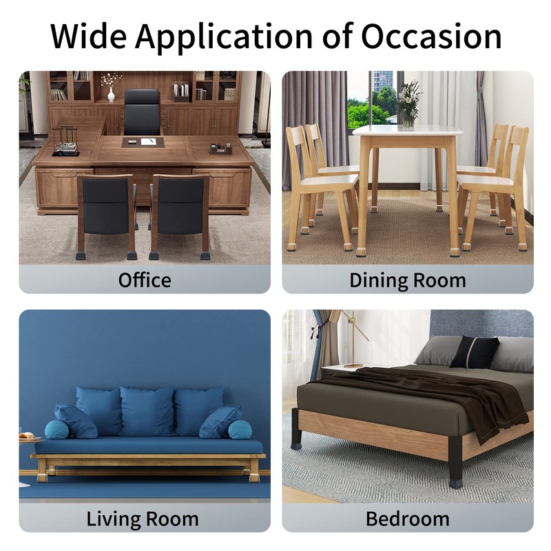 - ☛【No Gel, No Nails】- You don`t worry about cleaning and damage furniture. Using nails will damage the furniture leg foot. The adhesion of gel is not strong enough, easy leave residual glue on the carpet. Our upgraded chair leg protectors for carpet are easy to slip-on, no need gel to stick, and no need nails. Simple to wrap and not easy to fall off.