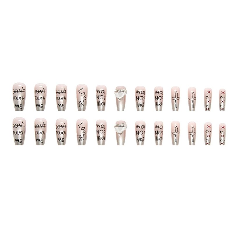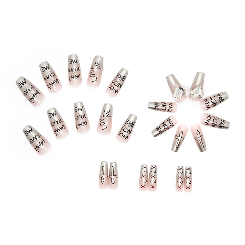 24 Pcs Nail Tips Silver Gradient French Flesh Alphabet Symbol Nails
