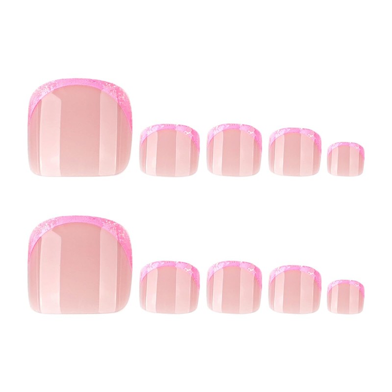 24 Pcs Nude Pink Press On Toenails for Women,YEFIUO Acrylic Fake Toe Nails Press ons Nail Art Rose Pink Glitter French Glossy Design Full Cover False Nails Glue on Toe Nails Stick on Nails for Ma'am
