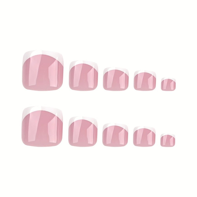 24 Pcs Pink Press on Short Toenails - MINGCHUN Summer Fake Toenails Press ons Toenail with French White Border Full Cover False Glue on Stick on Toenails Artificial Acrylic Nail Art Kit