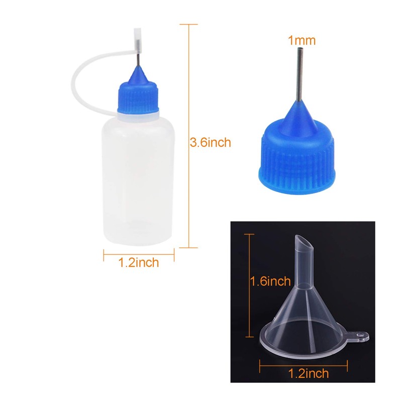 - Packing Include: 24 PCS precision tip applicator bottles with colored tips (4 white tips, 4 orange tips, 4 red tips, 4 blue tips, 4 black tips, 4 green tips ), good for distinguish; come with 5 PCS mini funnel