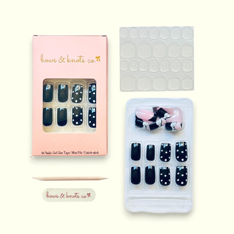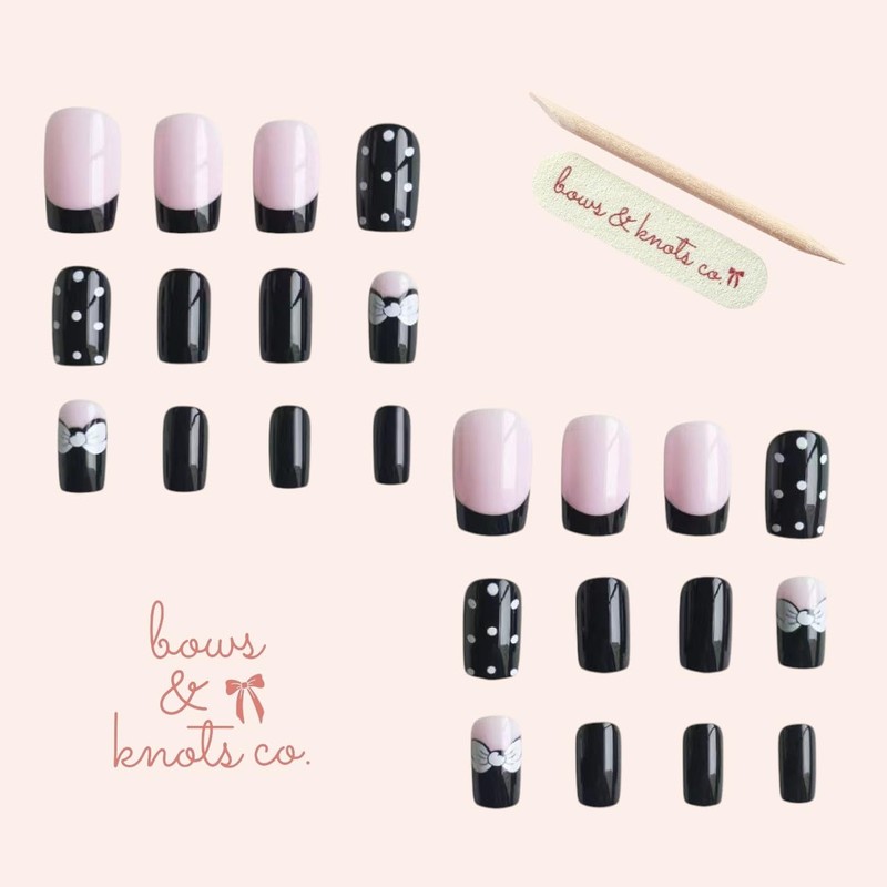 Perfect for any occasion, these short nails press on provide a stylish, glossy finish that complements any outfit. Whether youโ€™re heading to work, a party, or just want a fresh look, these press-on nails are the ultimate beauty hack. They also make a fantastic gift for nail lovers who appreciate effortless beauty. Upgrade your manicure game today with Bows And Knots Press-On Nails!