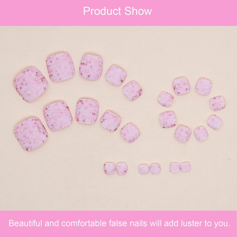 - 👣【Sweet Glitter】Pink toe fake nails are decorated with pink glitter on the main color of pink. It has a unique style and can easily show off the sweet temperament of women.