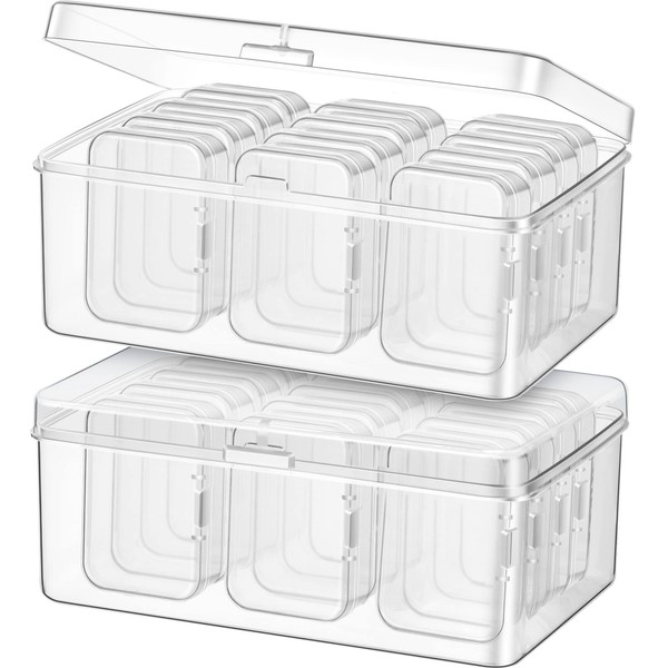 - Proper sizes: each clear plastic storage container is about 5.4 x 5.4 x 2 cm/ 2.12 x 2.12 x 0.79 inches, and each rectangle craft supply case is approx. 17 x 11 x 6 cm/ 6.7 x 4.33 x 2.36 inches; You can put these mini clear plastic storage containers into the rectangle case to protect the mini cases from loss and to organize and save your space