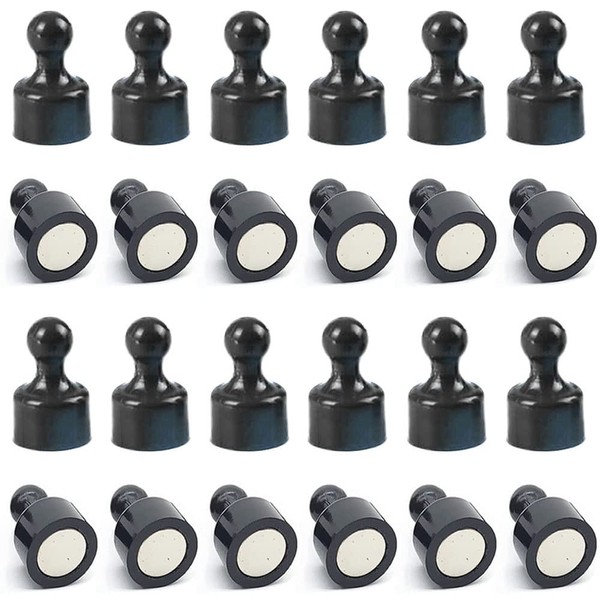 24 PCS Small Refrigerator Magnets Strong Fridge Magnets Magnetic Push Pins Whiteboard Magnets Map Magnets Perfect for Home Kitchen Office School Classroom Black