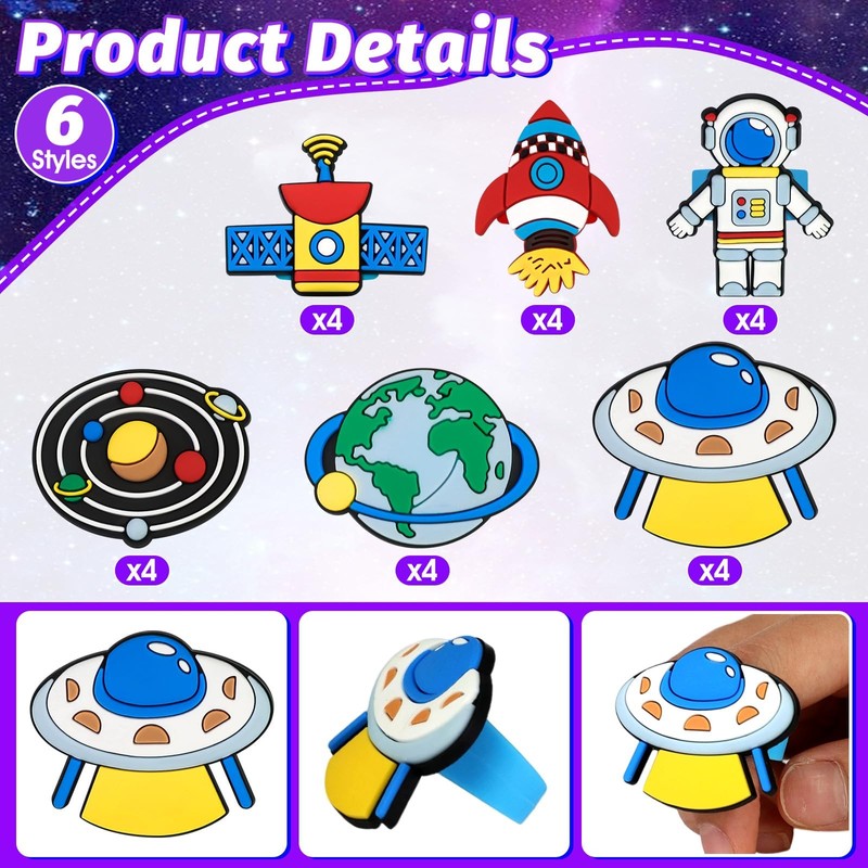 • PREMIUM QUALITY MATERIAL: These outer space cupcake toppers are made of rubber, soft and flexible, not easy to break and reusable. The cupcake rings have good elasticity and stretchability, won't damage your fingers. TIP: Do not put them in the microwave or oven, only for decoration.
