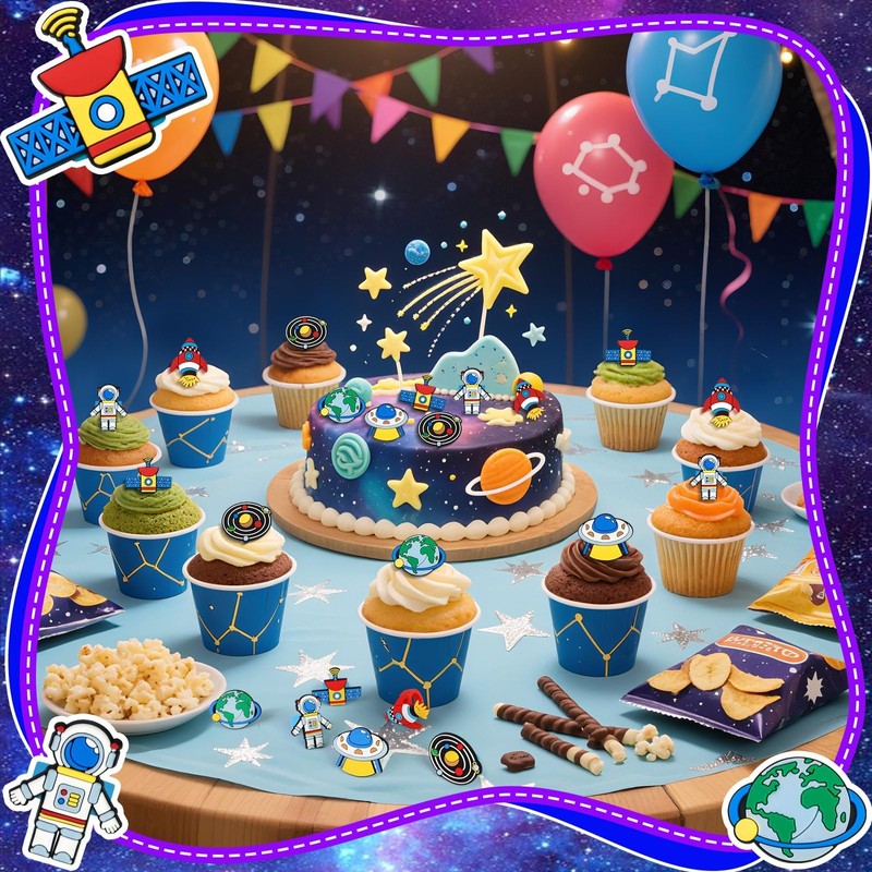 • PERFECT PARTY DECORATION: The party cupcake picks are perfect for outer space themed parties, help you decorate on cakes, cupcakes, fruits, sippy cups or any desserts, easy to create outer space party atmosphere.