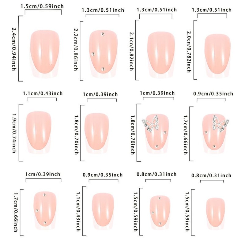- What's Include: 24 nail 12 sizes ensure a totally custom fit, plus we give you everything needed just in case! Each set comes complete with a storage box, nail glue,Jelly glue,alcohol cotton,nail file,stick