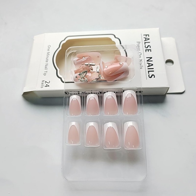- How Natural They Are: These french tip press on nails almond ,short square, medium square,are made by acrylic, zero pressure on your nail beds and feel like real nails,The fit is so strong that it feels like a real nail, allowing you finger to move freely