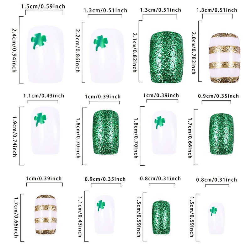 - Package Include: You will receive 24pcs St. Patrick's Day press on nails, 24pcs double-side glue stickers, 1pcs nail file, 1 wooden stick, 1 pack of alcohol cotton, don’t need to purchase anything else