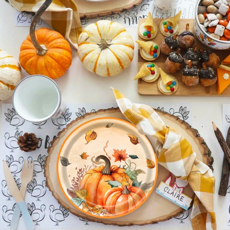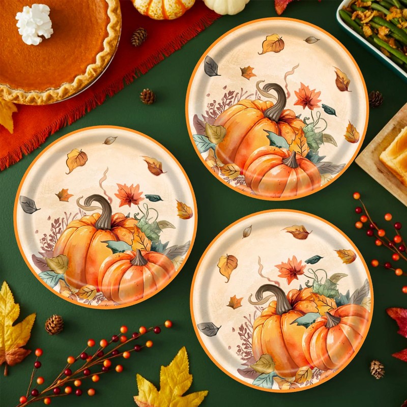 - Design: The disposable Thanksgiving paper plate is printed with patterns of pumpkins and maple leaves and features a watercolor design, making it the perfect decoration for autumn and Thanksgiving parties