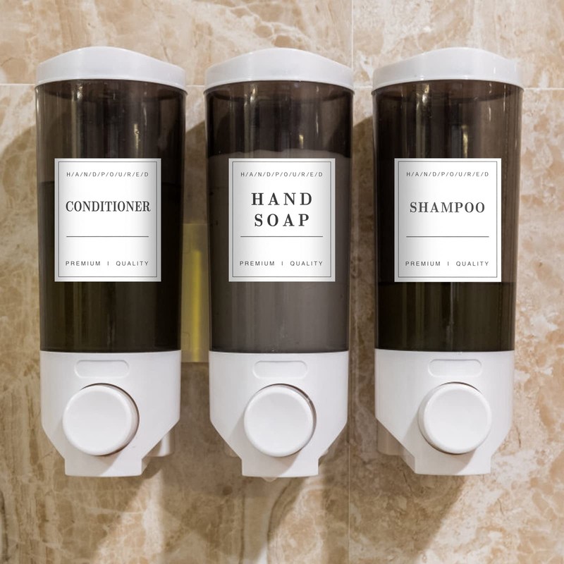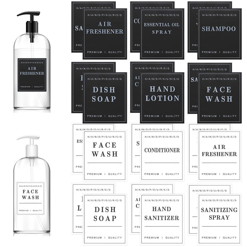 - [Simple and Stylish] These waterproof labels are perfect for tidying up bathroom and kitchen soap dispensers, bathroom labels can make messy sanitary products tidy and orderly. A simple way to help you organize your kitchen and bathroom with style.