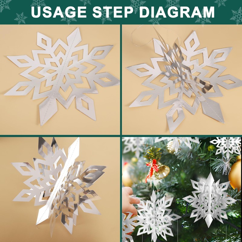 - Easy to Assemble: Once you receive these snowflake decorations just fold them along the seams to get 3D snowflakes, then hang them on the wall or elsewhere, it's very easy
