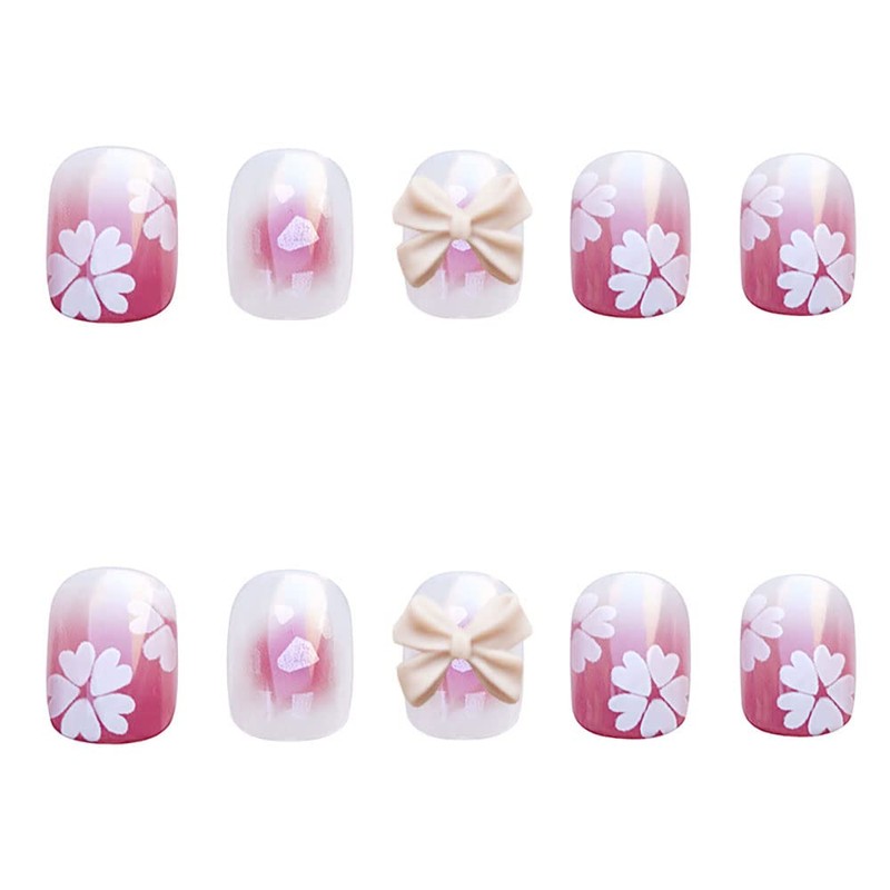 24 Piece Set Nail Tips, Ribbon Japanese Pattern Nails, Girly Nails
