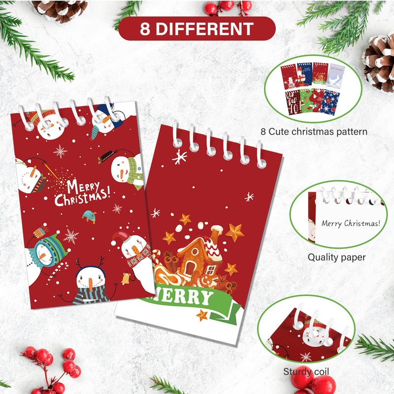 - What you will get: 24 Pieces of Christmas mini notepads, which are designed with 8 different patterns, 3 for each pattern, they are full of Christmas elements, such as the snowman, gingerbread man, Christmas glove, snowflake, Christmas house, gift box and more; They will give you unexpected surprises and bring a delightful mood when opening the package