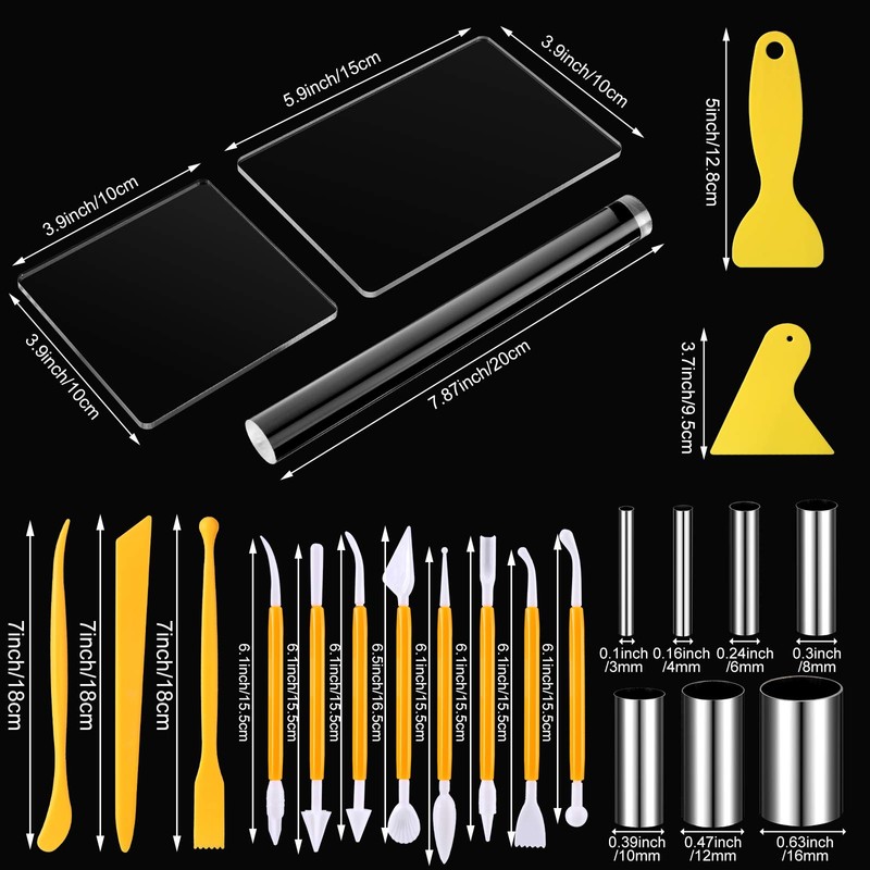 - Durable and reusable: our clay roller is made of acrylic, the clay roller and backing board are smooth and non-stick in surface, easy to clean, solid in cylinder shape, the clear design will not obstruct your view when you roll clay into the sheet; This scraper backing board is made of quality plastic, tough and sturdy enough, convenient to hang with hanging hole design on the handle, saving space for you; The clay modeling tools are made of wood, also tough and reliable to use