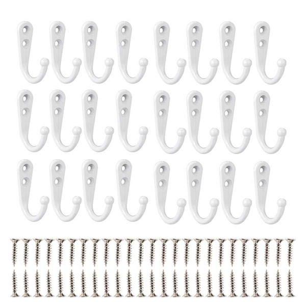 24 Pieces Coat Hooks, Wall Mounted Hook Robe Hooks Coat Hook Single Coat Hanger Cloth Hanger with 50 Pieces Screws for Cloakroom Bath Kitchen Garage (White)