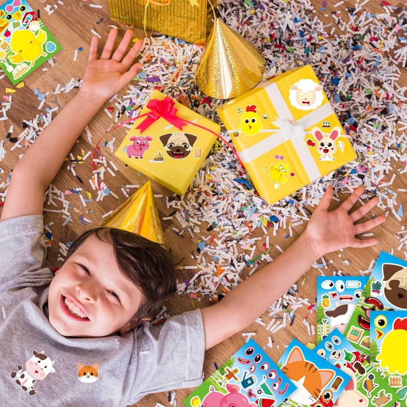 - GREAT PARTY GIFT Whether it's a birthday, school gathering, or holiday event, our DIY farm animal stickers are the ideal party favor that kids will absolutely love. These stickers also feature arts and crafts activities, group projects and classroom games, providing endless hours of fun for your kids.