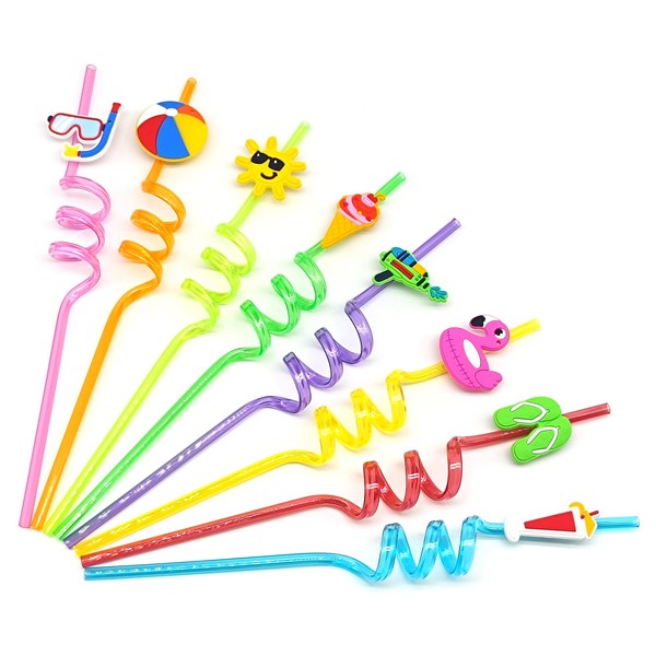 24 Pieces Reusable Crazy Drinking Straws, Beach Pool Birthday Summer Party De...