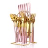 24 Pieces Silverware Set, Stainless Steel Flatware Set with Silverware Holder Spoons Forks Knives Set,Utensils Set Service for 6,Cutlery Set for Kitchen (Pink)