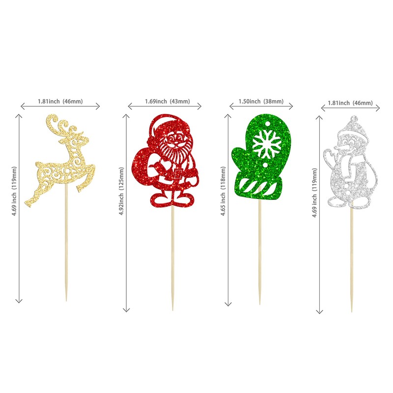 - Uso: son perfectos para fiestas de cumpleaños temáticas de Navidad, fiestas de cumpleaños para niños, fiestas de invierno del país de las maravillas de Navidad, fiestas de fiesta de Nochevieja, decoración de pasteles de fiesta de Año Nuevo, lo que hace que el cupcake se vea más sabroso y atractivo.