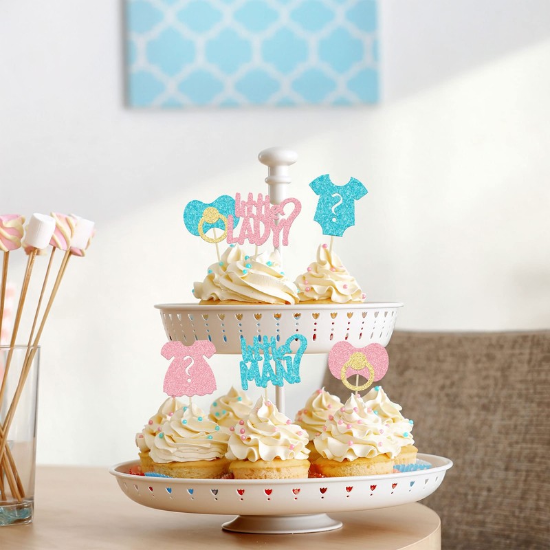 - 100% garantía de satisfacción: adornos para cupcakes de gran valor para ti, simplemente llévalos para decorar tu fiesta temática de revelación de género Nuestra máxima prioridad es tu satisfacción. Si no estás absolutamente encantado con el producto, te daremos un reembolso completo Estos adornos para cupcakes no son comestibles y están diseñados solo para decoración, por favor, no lo utilices en el horno o microondas.