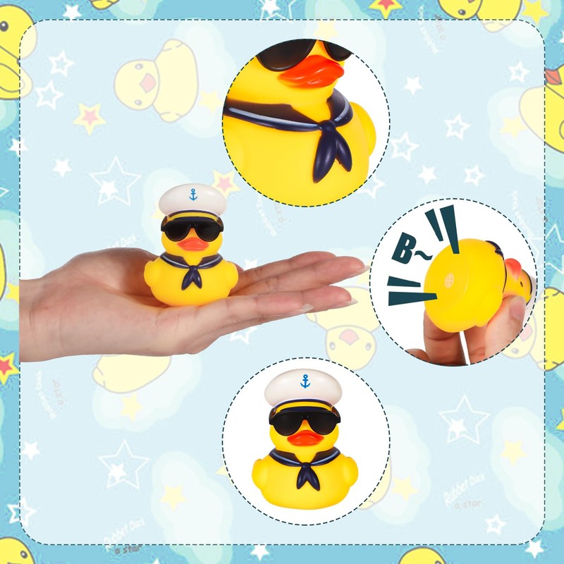 • Package contents: you will receive 24 pieces rubber ducks with sunglasses. The bottom of the mini duck has installed the device for the sound-producing device, so you can press or press to create sounds. A sufficient amount is enough to share with your family or companions.