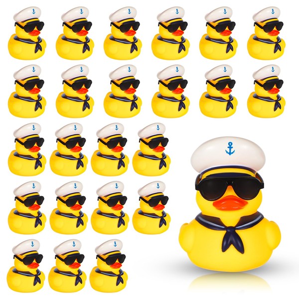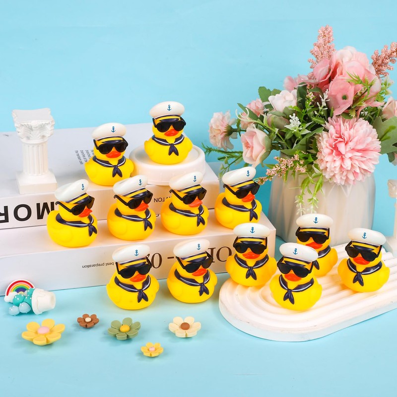 24 Rubber Ducks with Sunglasses, Cruise Ducks Yellow Mini Rubber Ducks Mini Sailing Squeaky Ducks with Hats Bath Ducks Toy for Birthday Party Gifts Classroom Carnival Prizes